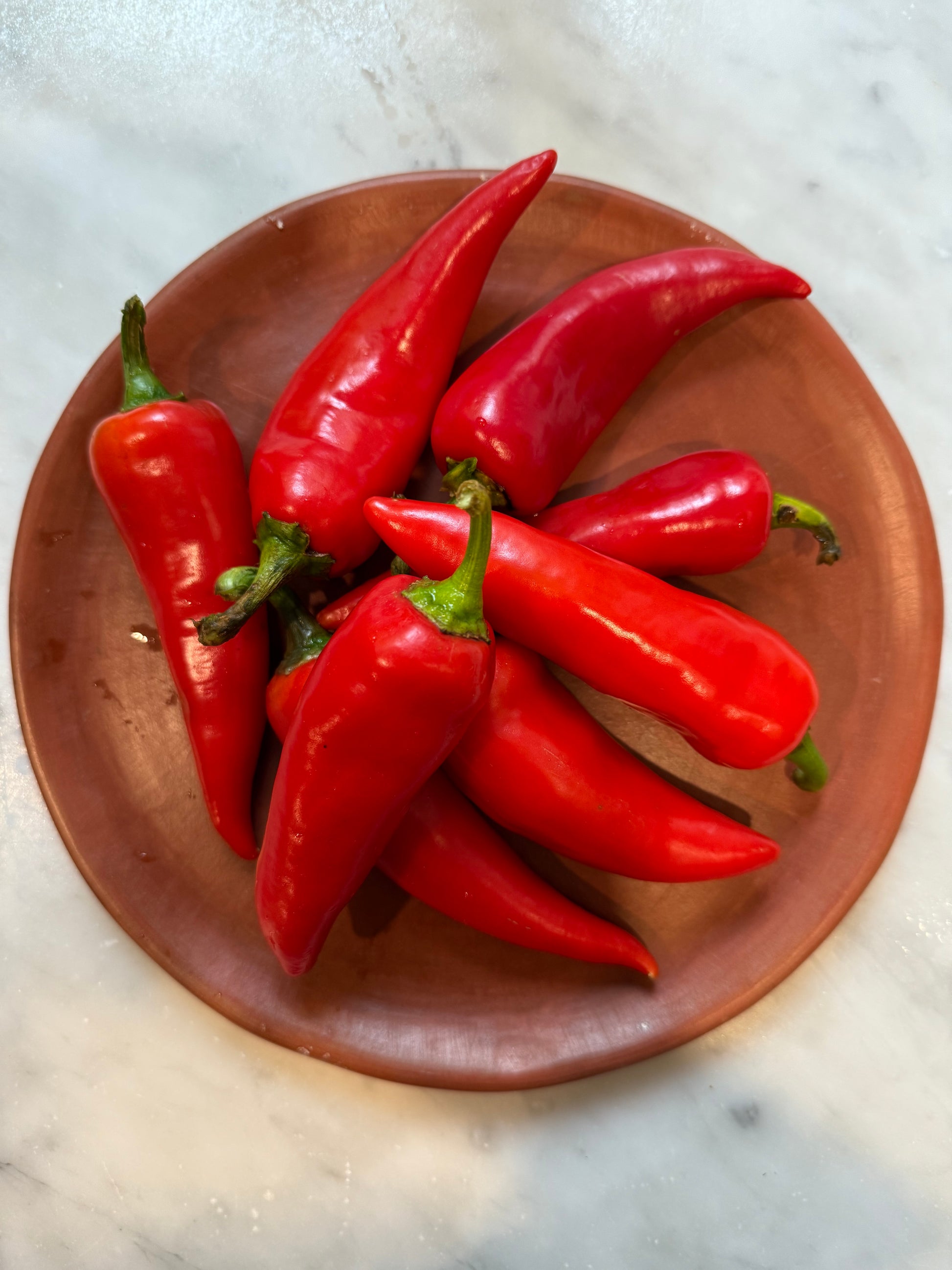 -Fresno peppers harvested from Eloisa Organic Farm:        https://eloisaorganicfarm.com